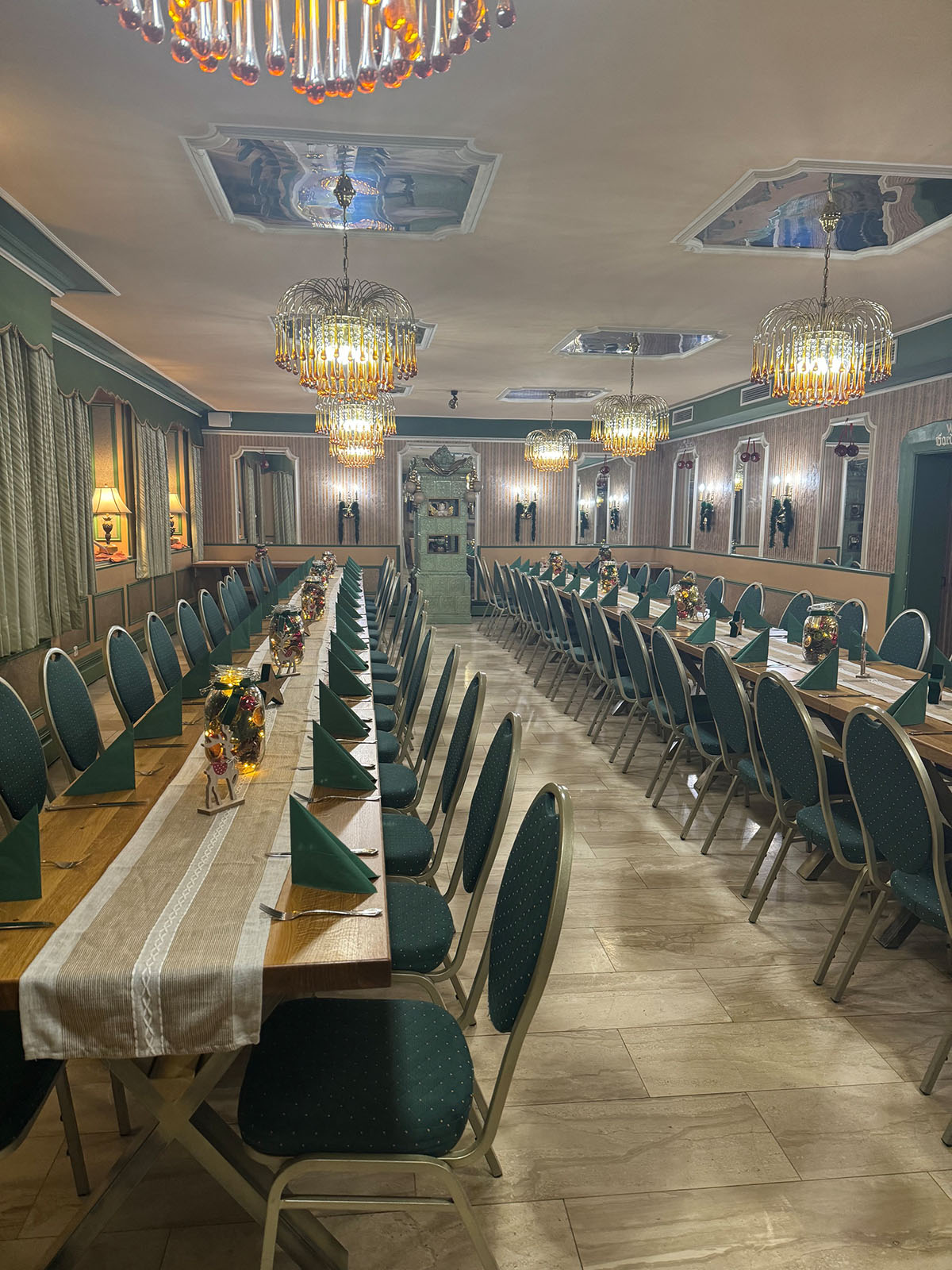 You will find the Spiegelsaal located right next to our front desk. It's name stems from the mirrors and it's walls and the ceiling. The carefully decorated hall has already cast a spell over high-ranking personalities such as the former Pope Benedikt XVI. and back then known as cardinal Josef Ratzinger as well as several ministers. The hall is downright predestined for festivities. Up to 70 people can be seated here depending on the position of the tables.