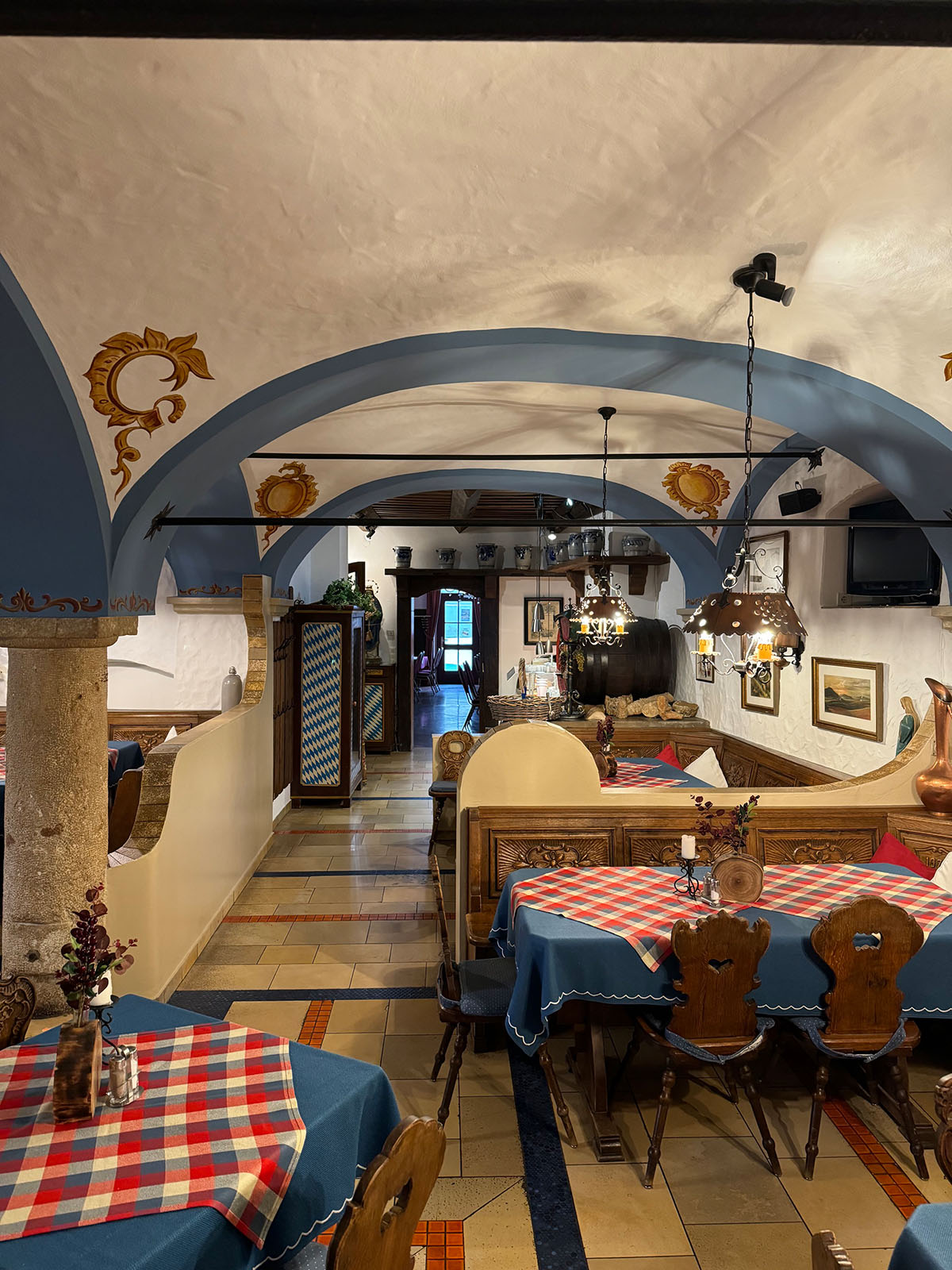 In het oude brouwhuis, waar toen bier werd gebrouwd, ontstond een Restaurant in de rustieke, Beierse stijl. Het mooie plafond wordt gesteund van een pilaar met rondbogen. Deze feit creëerde de huidige Beierse naam »Bräugwölb«. In 1979 werd het brouwgewelf verbouwt tot een feestzaal, zoals hij vandaag te zien is. Sindsdien wordt hij van menig gasten altijd weer geboekt. In deze unieke en traditionele sfeer blijf je graag iets langer zitten met elkaar. Het brouwgewelf biedt ruimte aan 30 tot 50 personen.